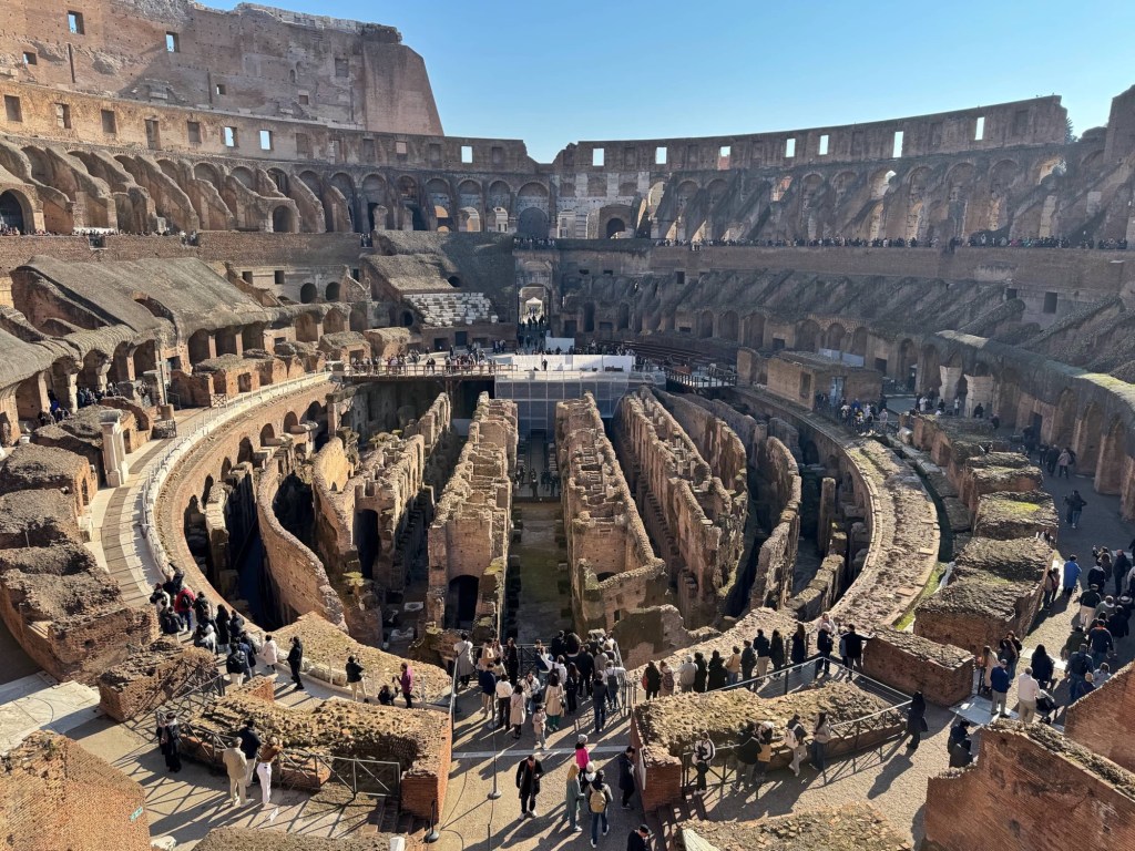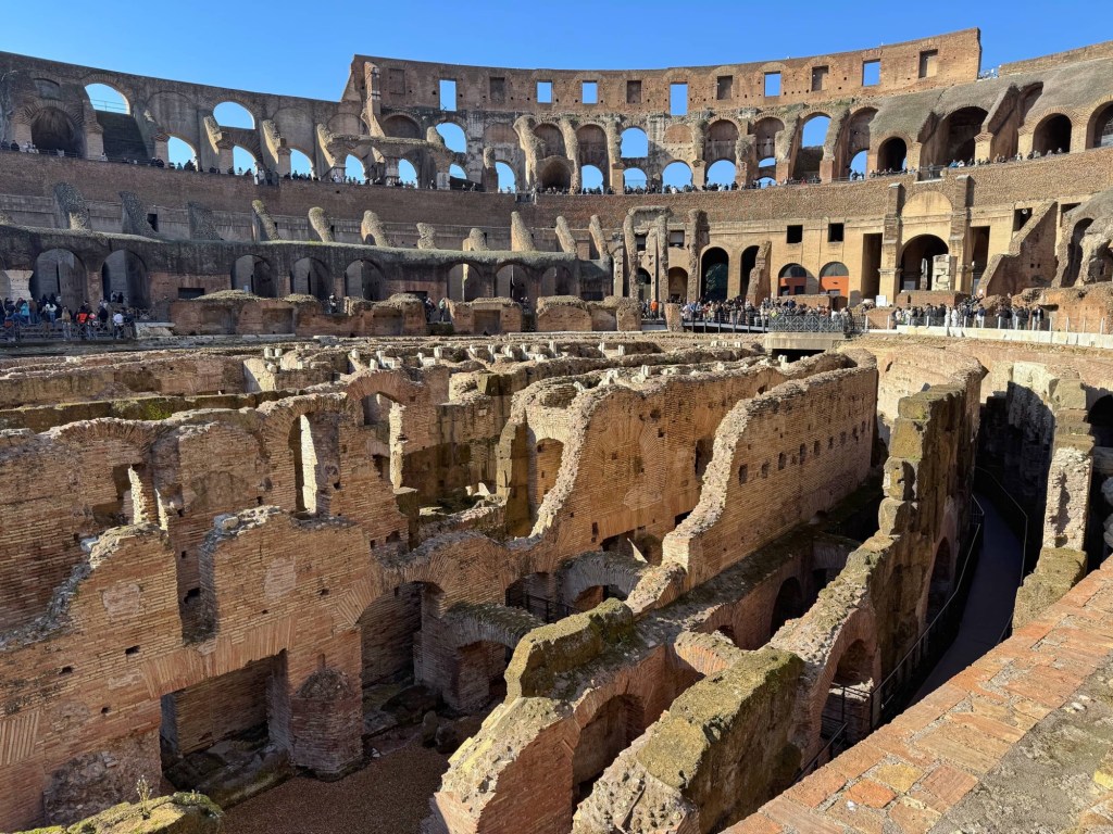 The Colosseum was built by Roman emperors in the first century BC for gladiator and animal fights. The tour guide explained how these were great spectacles, set up like a theatrical show. There were different types of gladiators, clothed and armed differently, but attempts were made to ensure gladiators were evenly matched so that fights weren’t over too quickly. Gladiators were the sport or film stars of their time and people had their favourites.