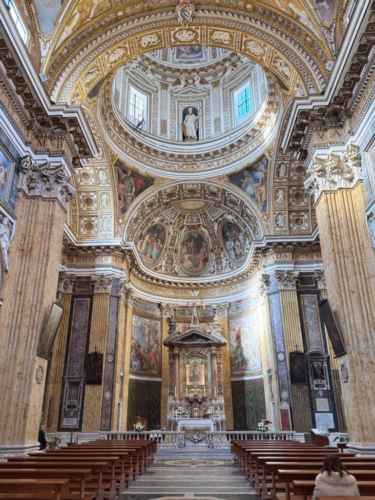 Before we headed back to meet Kathy, we climbed the steps to see the view from Palatine Hill… well, we did once we managed to find the steps, hidden away in a corner! Palatine Hill is one of the seven hills of Rome and it was quite a steep climb to the top, winding our way through ancient buildings, past terraces and balconies, and through beautiful gardens. We were surprised to see bright green parrots flitting between the trees, having been alerted to their presence by their screeching conversations! At the top, it was amazing how far we could see across the city, and fascinating to see the buildings in the Forum and the Colosseum from another angle.