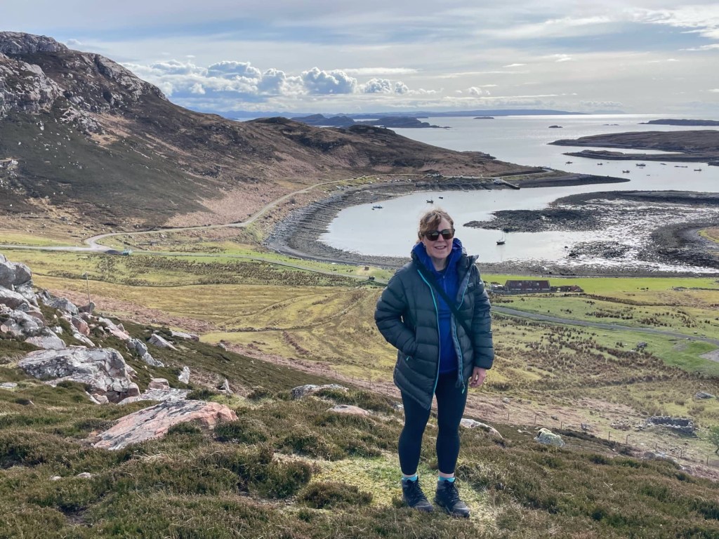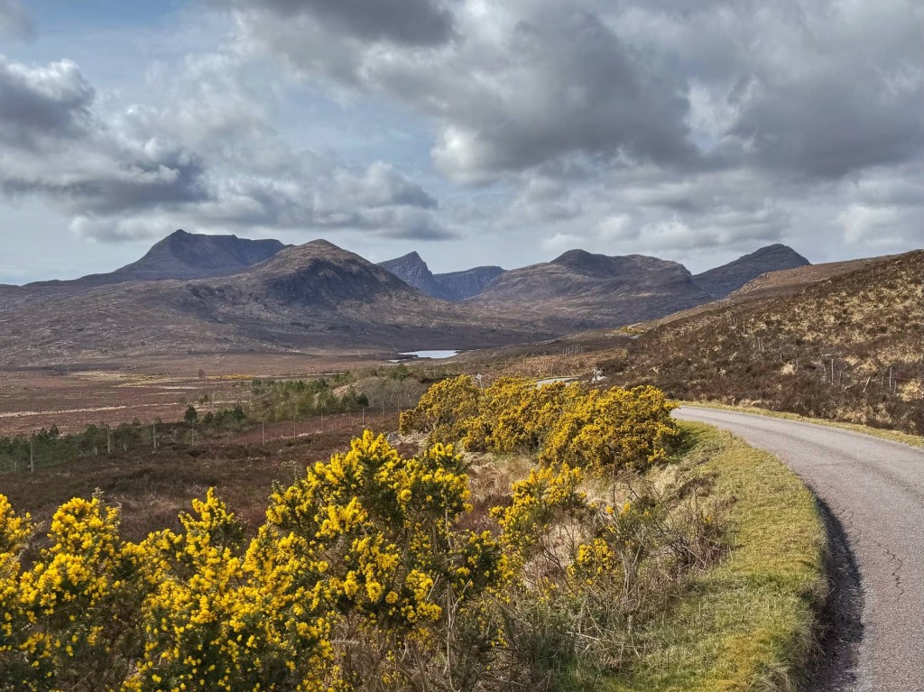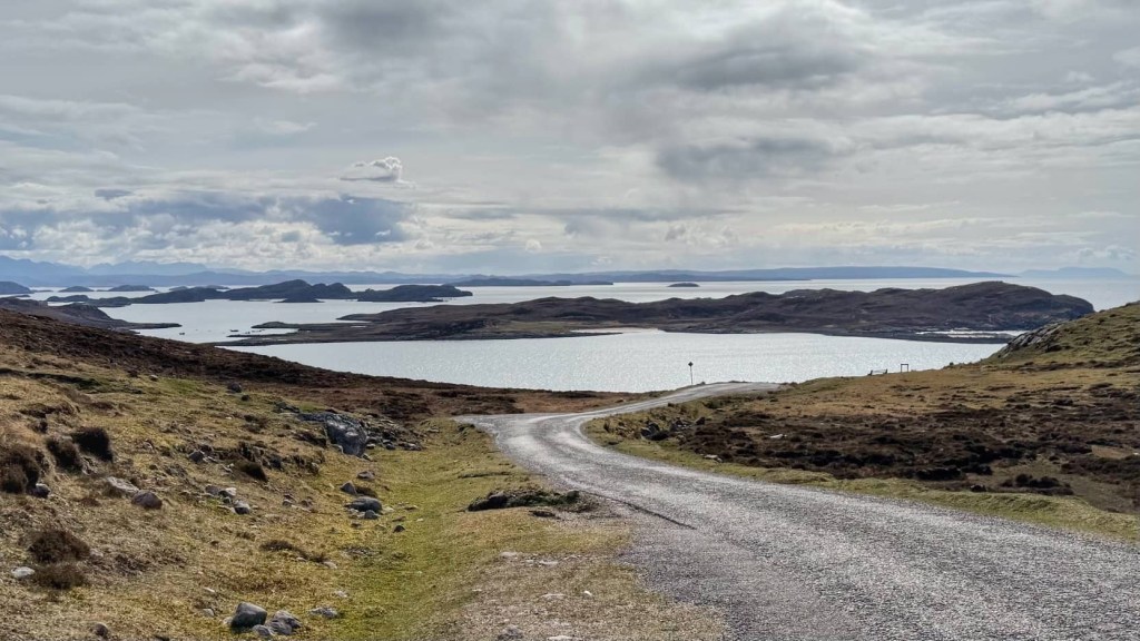 After lunch we left Debbie and David and headed out of Ullapool to a remote campsite on a pretty beach at Altandu, facing the Summer Isles. The single track road to get here wound through some spectacular mountains that we want to hike up while we’re here.