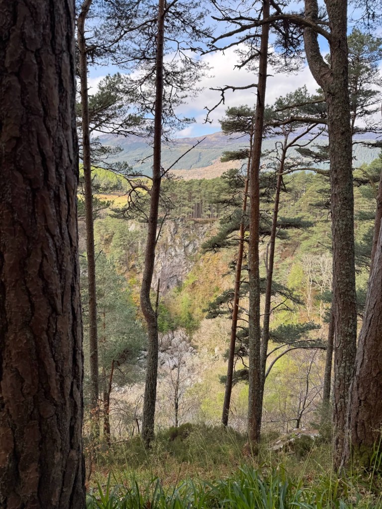 We had a walk uphill through woodland to visit the Falls of Foyers, which were more impressive than we expected, dropping deep into the gorge below.