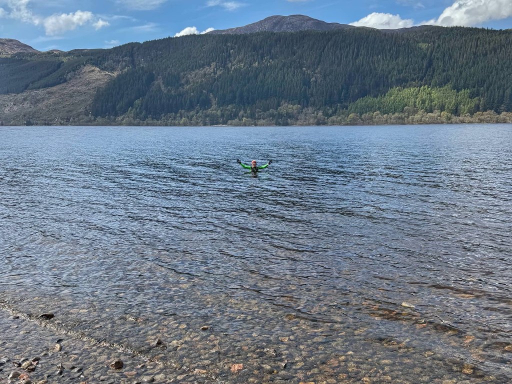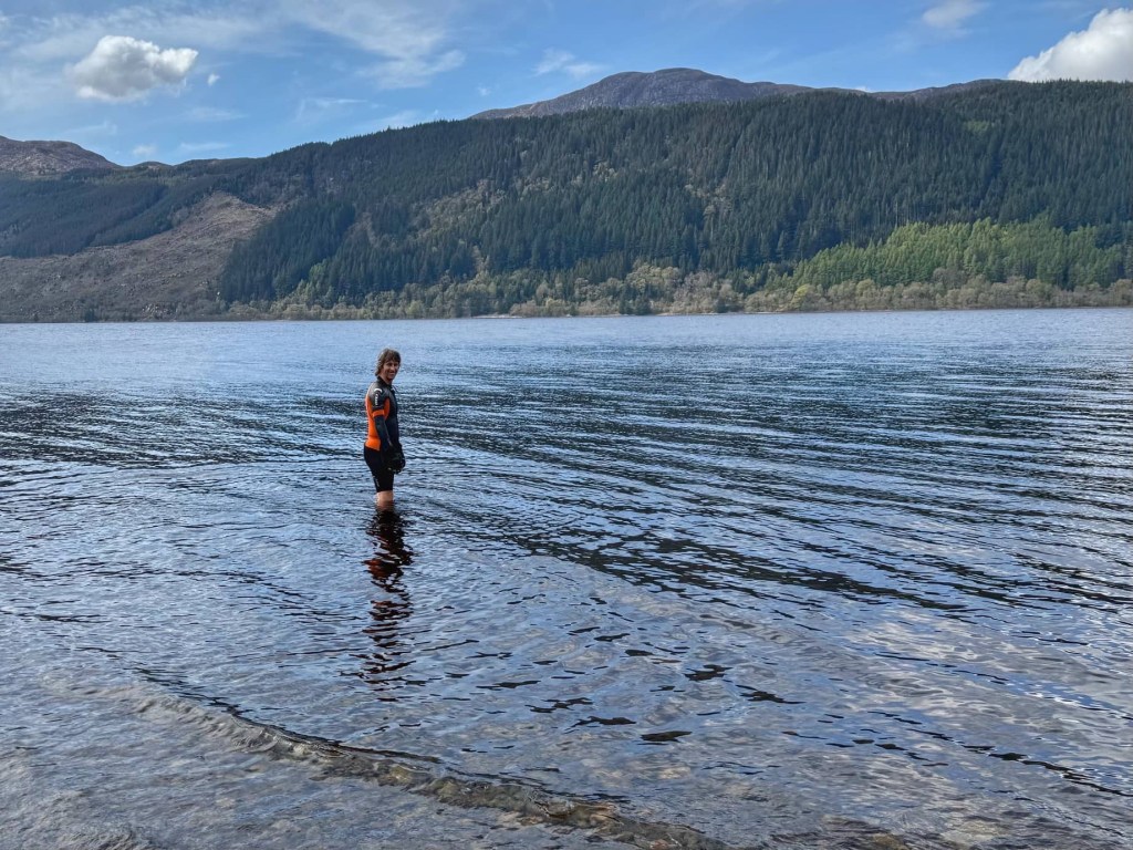 Back at the campsite, it was fairly warm and the bay by the site was sheltered from the wind, so I decided to be brave and swim in Loch Ness. I was pleased that John chose to join me… extra brave of him because he’s less used to cold water and, wow, it was freezing! We didn’t see any signs of Nessie, thankfully!