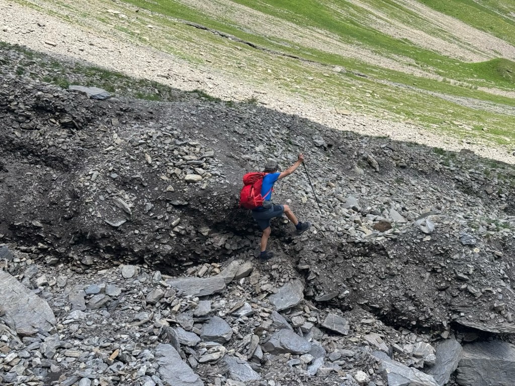 After about an hour, the track became narrower and noticeably steeper and more difficult. This route has 800 metres of ascent in just 3.5 kilometres (just over 2 miles) and it’s been a hot day!
