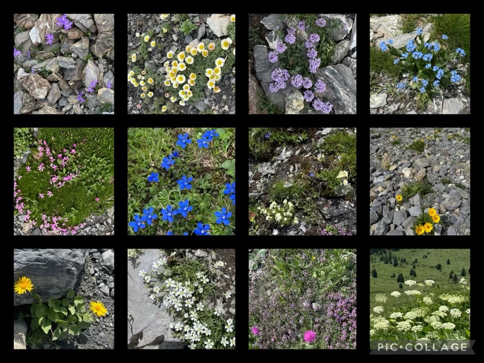 Going downhill and no longer having aching legs and lungs, it was easier to admire our surroundings. It’s amazing how the flowers grow in such harsh terrain, in rocky crevices and even on the barren scree slopes.