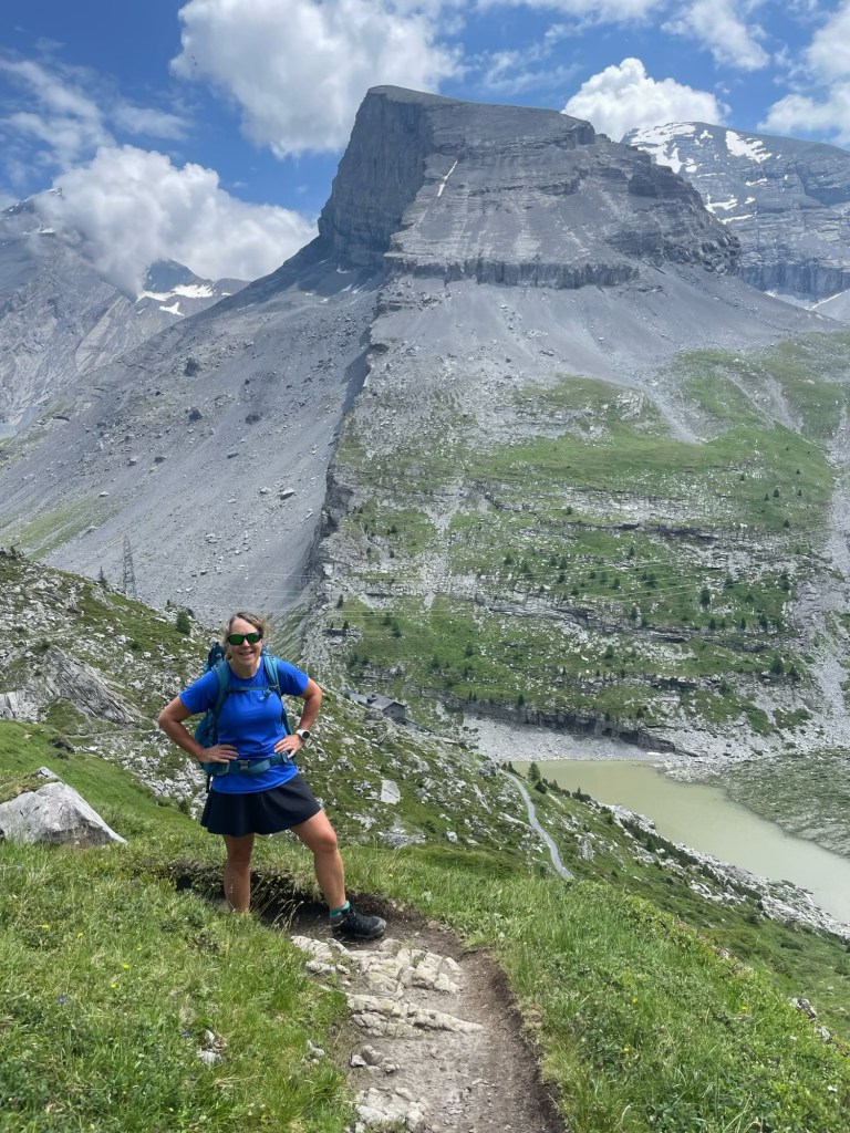 As well as flowers and wonderful views, we saw some cute and fluffy Valais Blacknose sheep, although they weren’t impressed with us marching over their mountain! Thankfully, the rain didn’t come our way, the clouds lifted and the sun appeared.