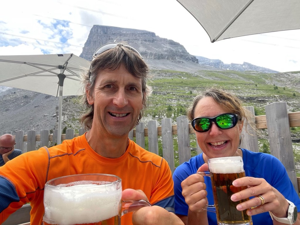 The descent was steep and rough over loose rocks and scree, and the path had been washed out in places by the recent storms. Hotel Schwarenbach was a welcome sight at the bottom and, once again, we rewarded ourselves with beer and cake.