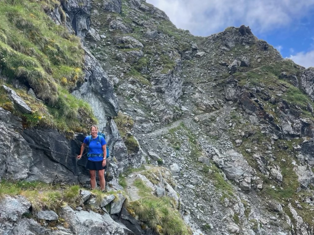 It was a beautiful balcony path, with a drop to our right, and stunning wild flowers. Where the drops were particularly steep, there were chains for support.
