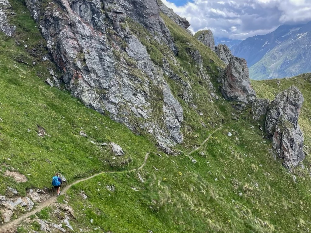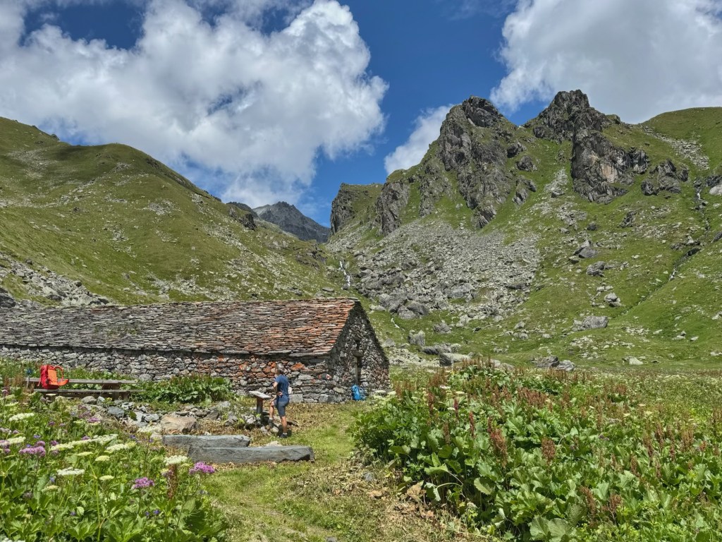 After stopping for lunch, we soon reached Col de Termin, rewarded with stunning views down into yet another valley. After the obligatory selfie on the top, we turned off the main path to take a path down to Cabanne de Louvie, where we’ll be spending the night. It was mostly downhill from here. Hooray!