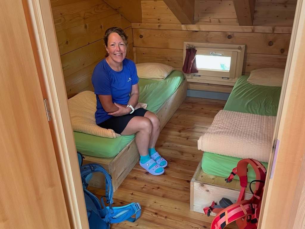 We were first to arrive at the hut so, after being shown to our cute little 2-bed room, we quickly got showers. Lots more people are arriving now and the larger dormitories will soon be full.