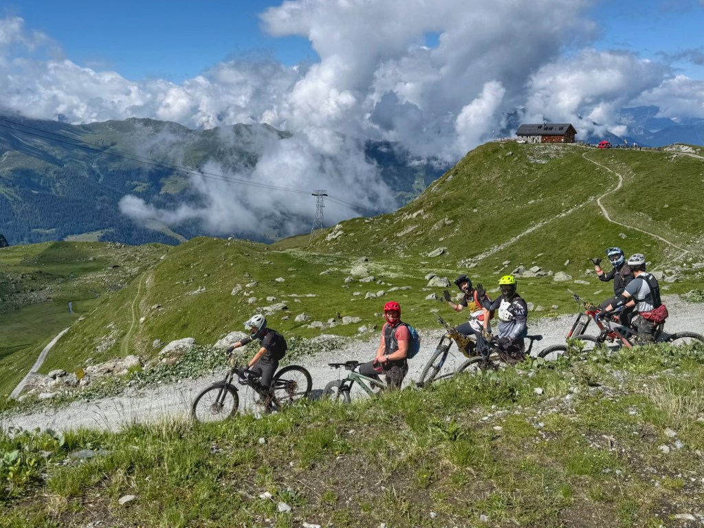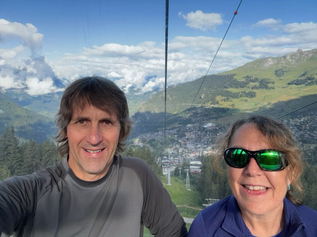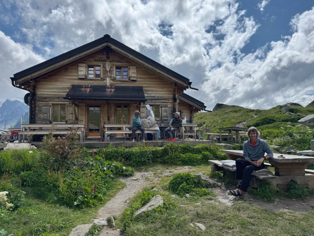 We passed under some ski lifts, heading to Cabane de Montfort perched on a rocky ledge above us. There was a 3-day mountain biking event going on and we could see the riders heading off down the narrow tracks from Cabane de Montfort and hear their shouts. Rather them than me!