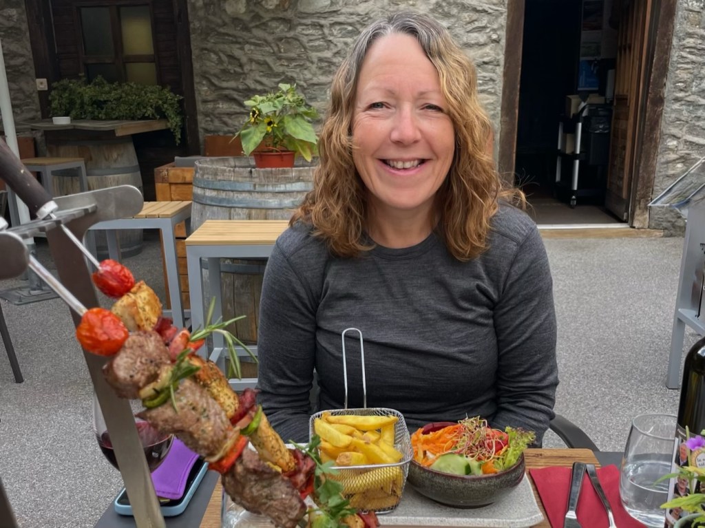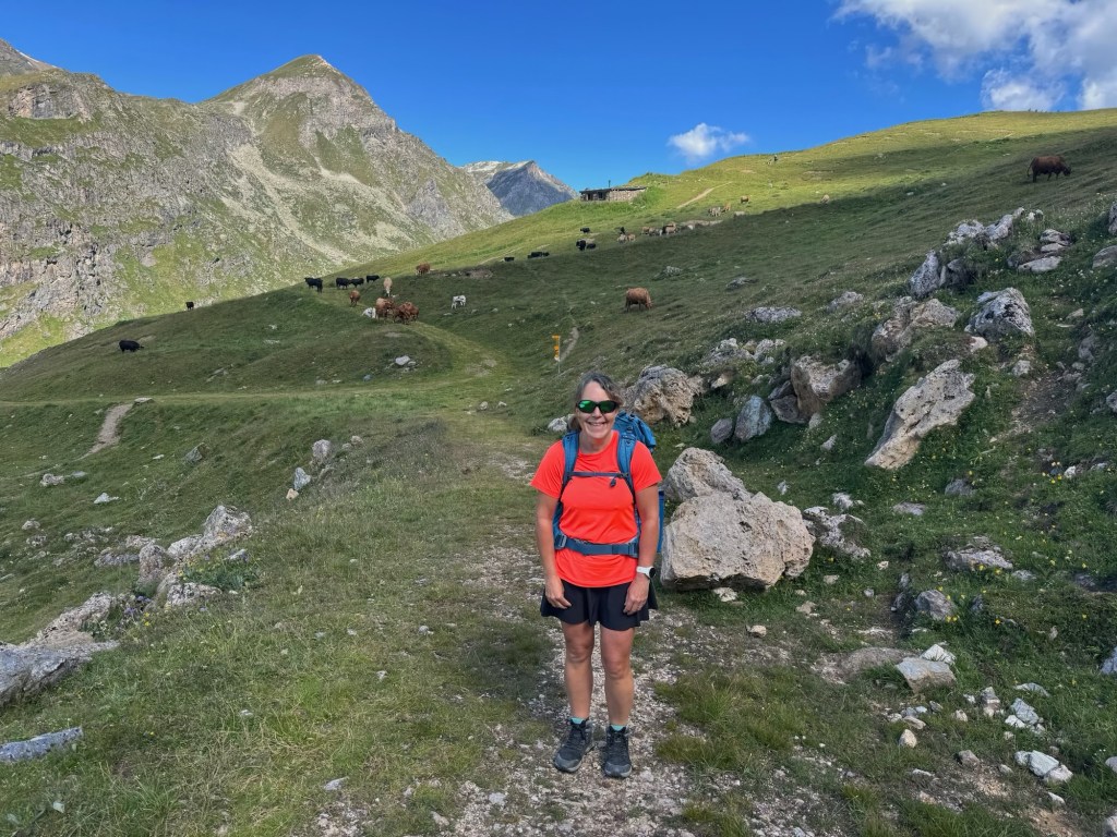 We’d watched a herd of cows being rounded up and moved down the hillside. Of course, they were all over the paths we were going to go up. I put my big girl knickers on and psyched myself up to walk through them, with John close beside me to look after me. ☺️ Then, to my horror, the younger, smaller cows started running at me. I started panicking, but John kept me calm, and waving my walking pole seemed to deter them from coming too close. I’ve never run up such a steep hill so fast! Thankfully they didn’t follow!