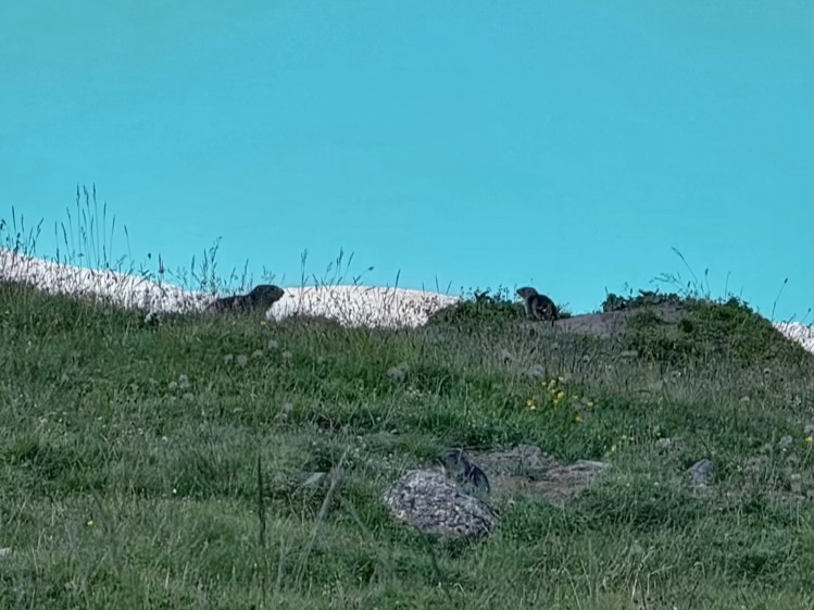 After a while, we could see the milky turquoise Lac de Moiry, and its dam at the far end. We also saw some marmots again, including another baby! Then, we reached another path junction where, instead of turning downhill to the dam, we headed uphill to Col de Sorebois.