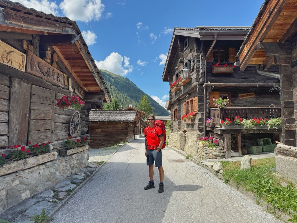 Down in Zinal, we were too early to check into our hotel so we found a bar and had a lovely relaxing couple of hours soaking up the sun with a few drinks. Wonderful! Zinal is a beautiful place. On our way to the hotel, a local pointed us in the direction of the old part of the town, which is full of lovely wooden houses, decorated with flowers, carvings and old machinery. He also recommended somewhere for dinner. I’m looking forward to that!