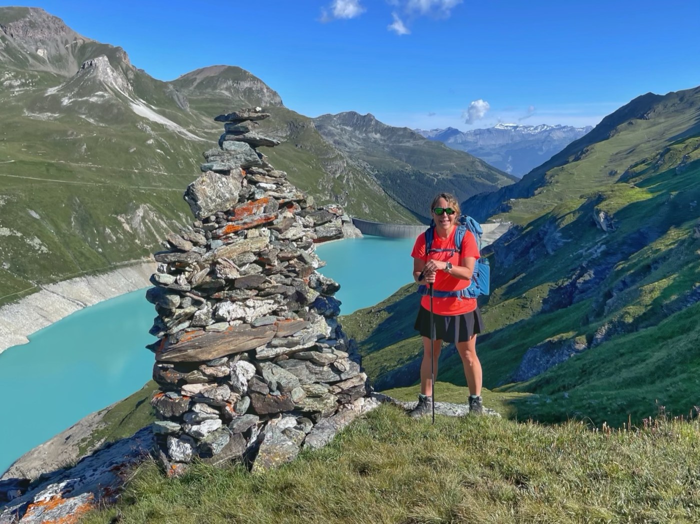 We left Cabane de Moiry bright and early, retracing our steps back down over the rocks, snow and glacial moraine to a path junction, before taking a path to ‘Moiry Barrage’. We were in the shade for much of the morning and, even when we were in the sunshine, there was a lovely cooling breeze.