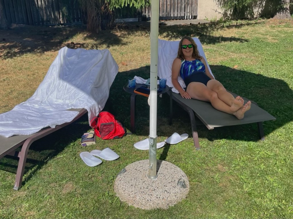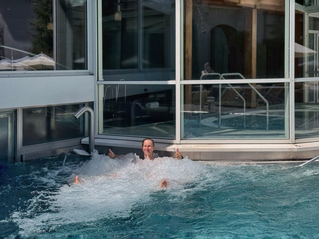 After lunch at our hotel bar, we walked down the road to the Mont Cervin Palace. This is a sister hotel to the Monte Rosa and we were able to use the pool there free of charge during our stay. We spent a wonderful couple of hours floating in the water, being pummelled by various water jets, and soaking up the sunshine.