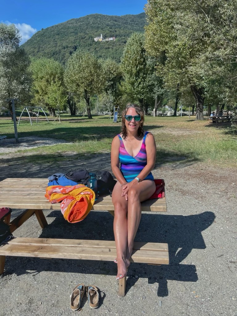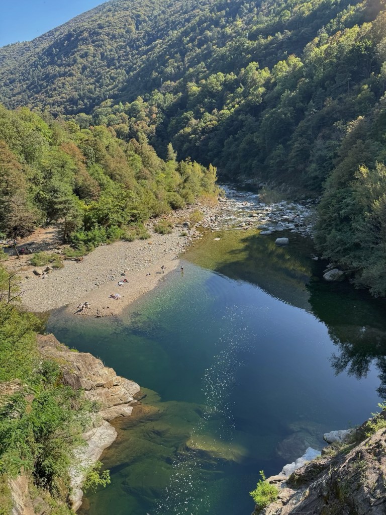 We also cycled up River Cannobio to the Orrido di Sant’Anna, a gorge carved out of the rock by the river. John and I swam in a deep pool here, which was far colder than the lake. Our bodies were tingling afterwards. Wonderful!
