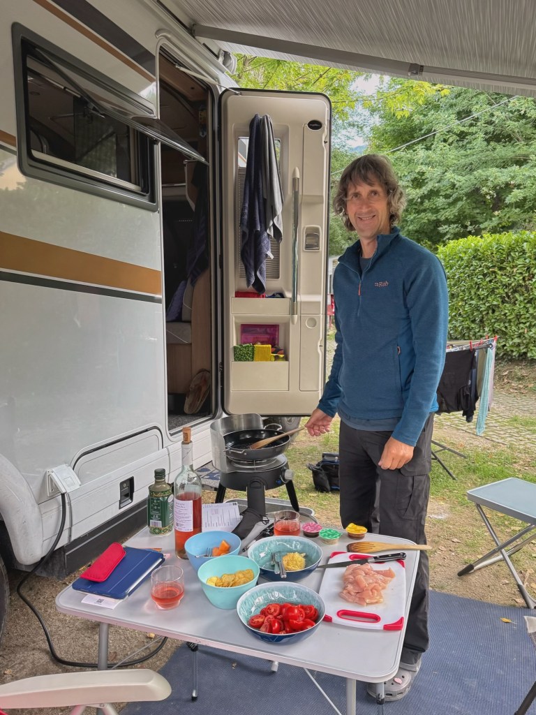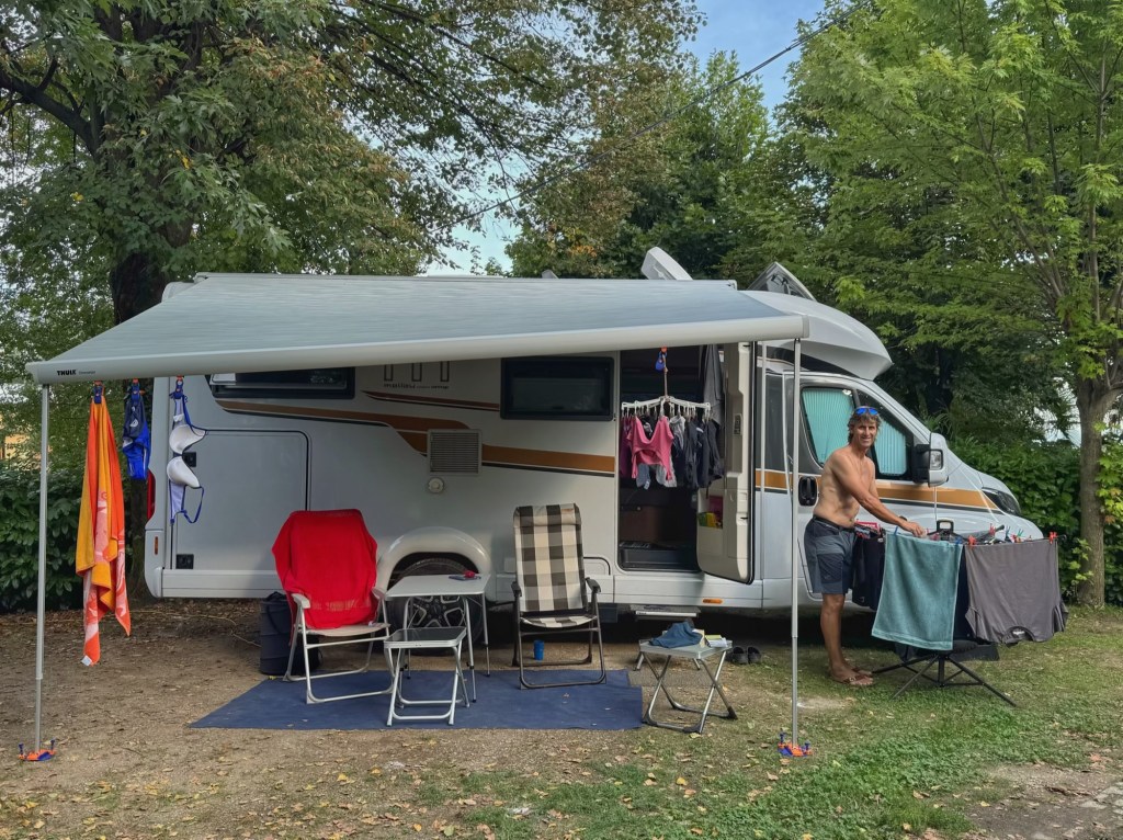 Our next stop was a campsite in Baveno, on Lake Maggiore. Itās a lovely peaceful site and just 21 Euros a night. We did our washing and hung it on the line, then had a swim in the pool before an al fresco dinner. I have to admit to being fed up of the midges that are persecuting me though. My legs have been covered in bites since we arrived in the Italian lakes, which are affecting my ability to sleep well at night⦠grrrr!
