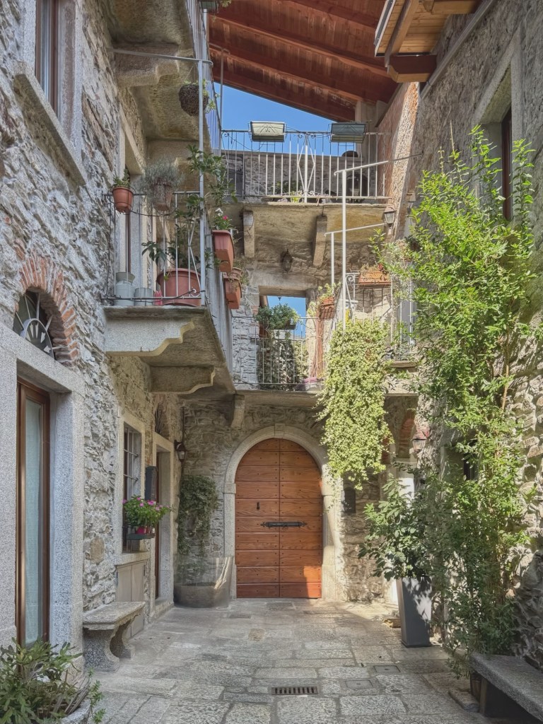 Lake Mergozzo was originally connected to Lake Maggiore but is now completely separate. Itās much smaller and quieter because itās off the beaten track and less populated. We had lunch in the town of Mergozzo, sitting in a bar on the waterfront with a beautiful view.