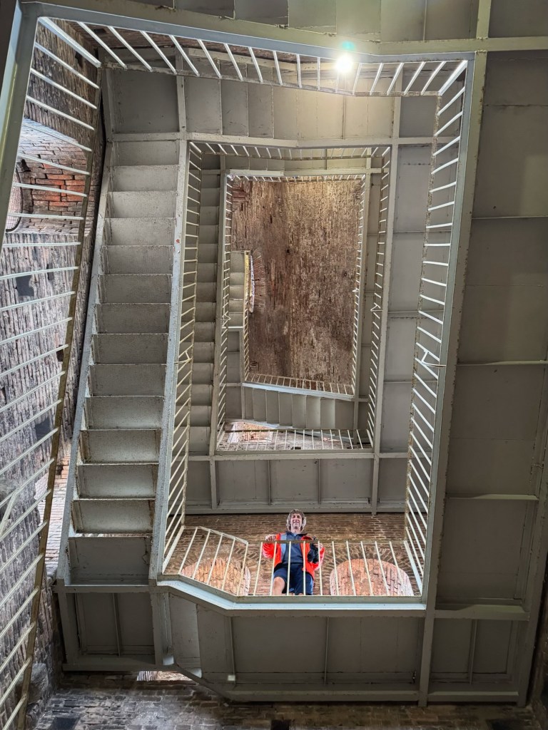 The tower dates from the 1300s and is 45 metres high. As we climbed the many stone steps and then narrow iron stairs, we kept standing back to allow people coming down to pass. Out of the dozens, I think only one person said ‘thank you’! Rude!