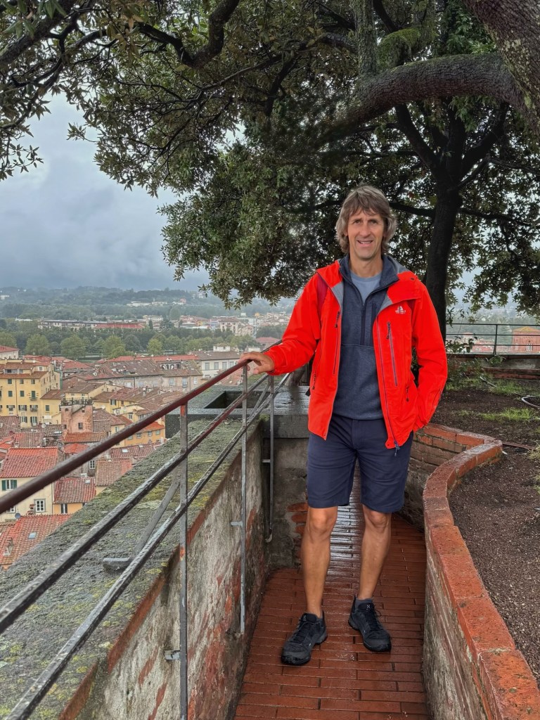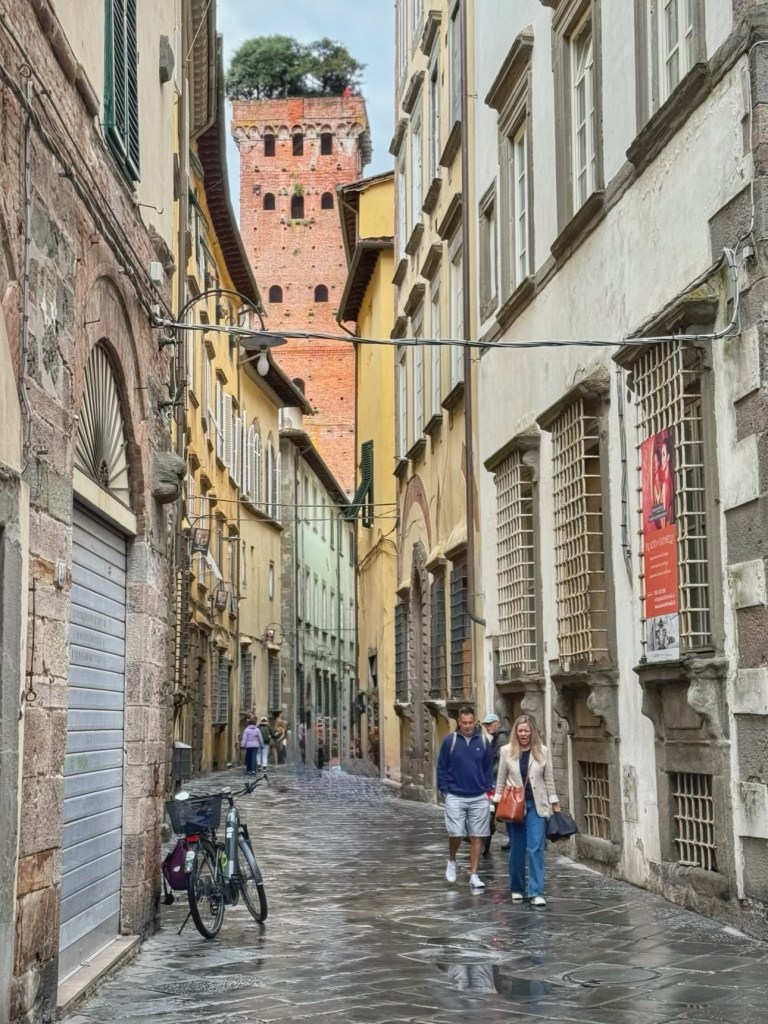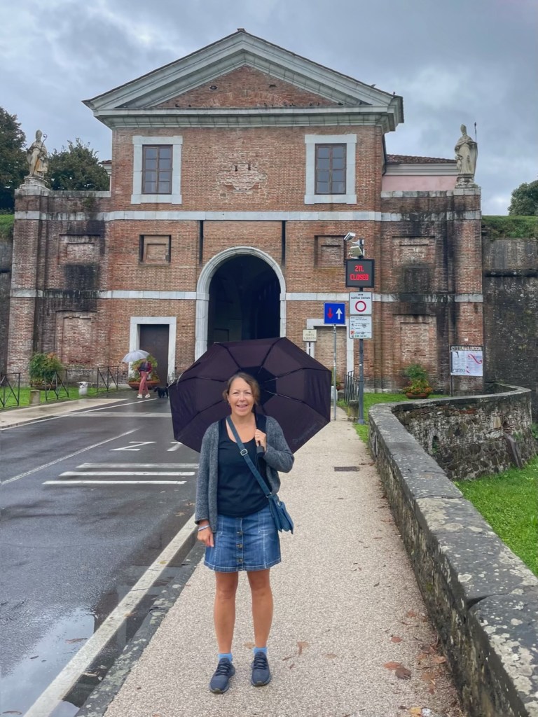 Once we had the coast in sight the sun came out and we made good progress to our campsite just outside Lucca. Our plans to visit the city in the afternoon were scuppered when the clouds darkened and it poured down! We postponed our walk to the following day, hoping the rain would ease. Pisa will have to wait for another time.