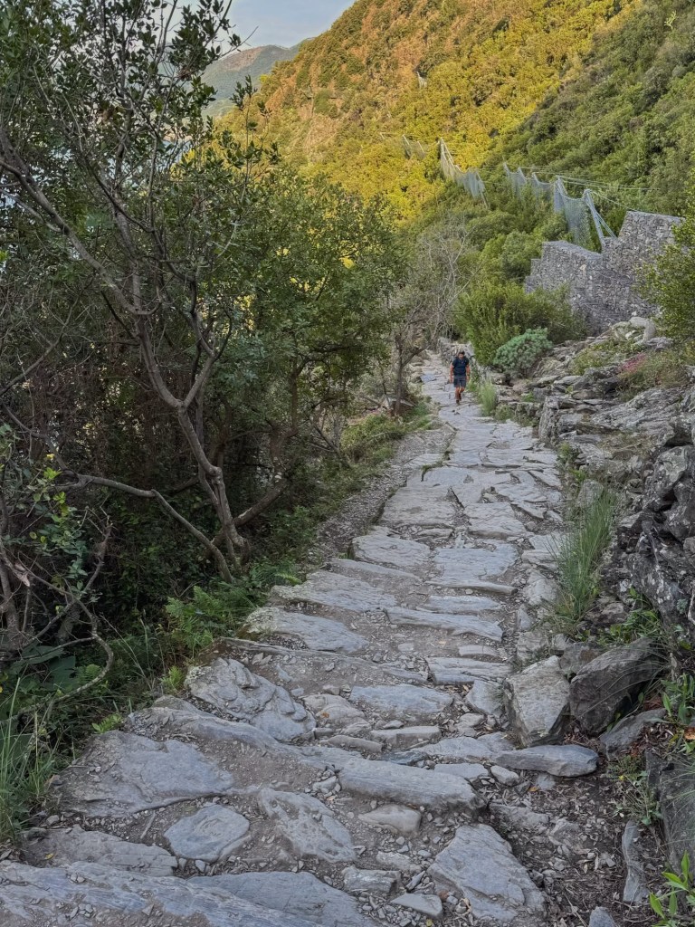 Having left our apartment and had a cafe breakfast, we immediately headed uphill out of Vernazza through narrow stepped alleyways. A level path through terraces typical of the area followed, before we climbed again. Thankfully, we’d set off early so it wasn’t too hot yet.