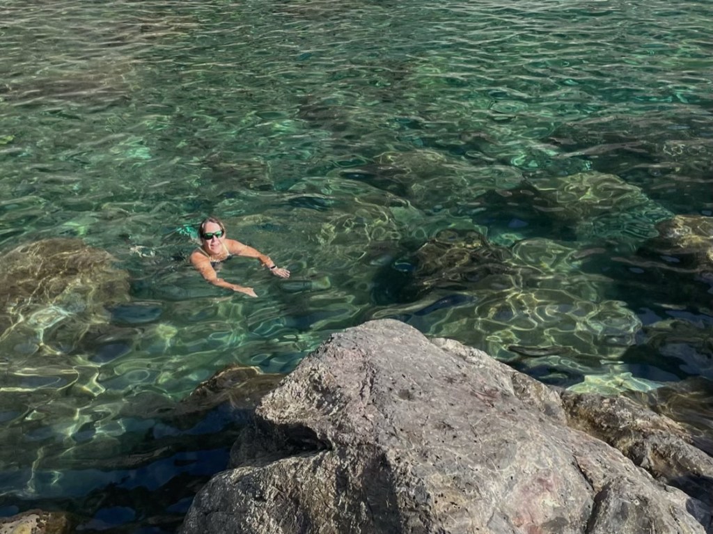 We had some time to spare before we checked into our apartment so we wandered past the harbour and found the beach, choosing to swim from rocks rather than the pebble beach. The sea was divine! So much so, we went in twice before we dried off and headed into the town.