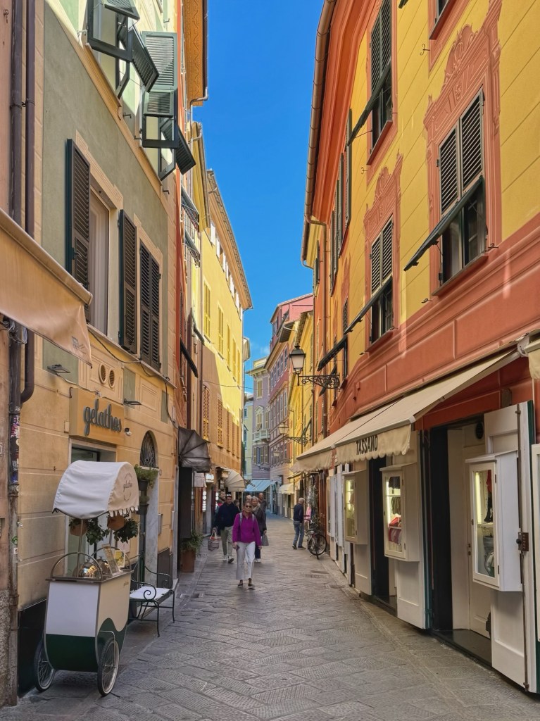 Sestri Levante is a pretty resort, with multicoloured houses, painted with 3 dimensional looking panels and amazing frescos. We had delicious Italian cakes and coffees in the old town, before exploring the tiny Isola Peninsula, which we could see from the viewpoints on the trail.