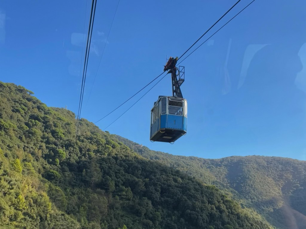 We caught the bus into Rapallo, rather than tackling the horrible busy road. Then we walked to the cable car station to go up the mountain to Montallegro. The cable car looked old, but thankfully ran very smoothly.