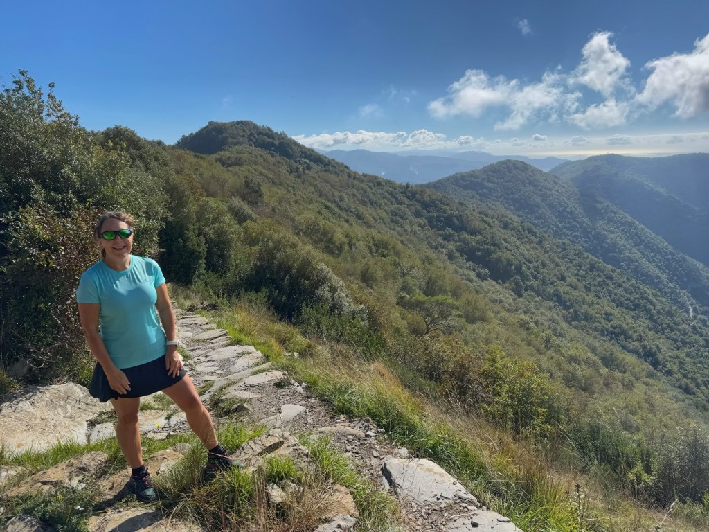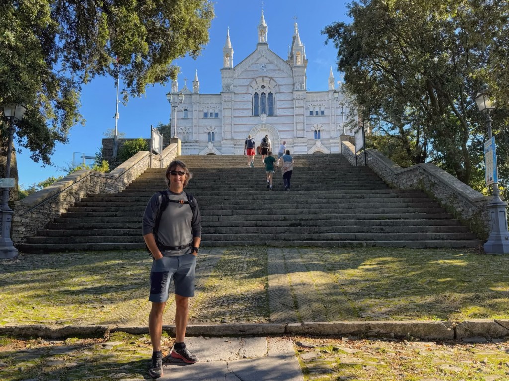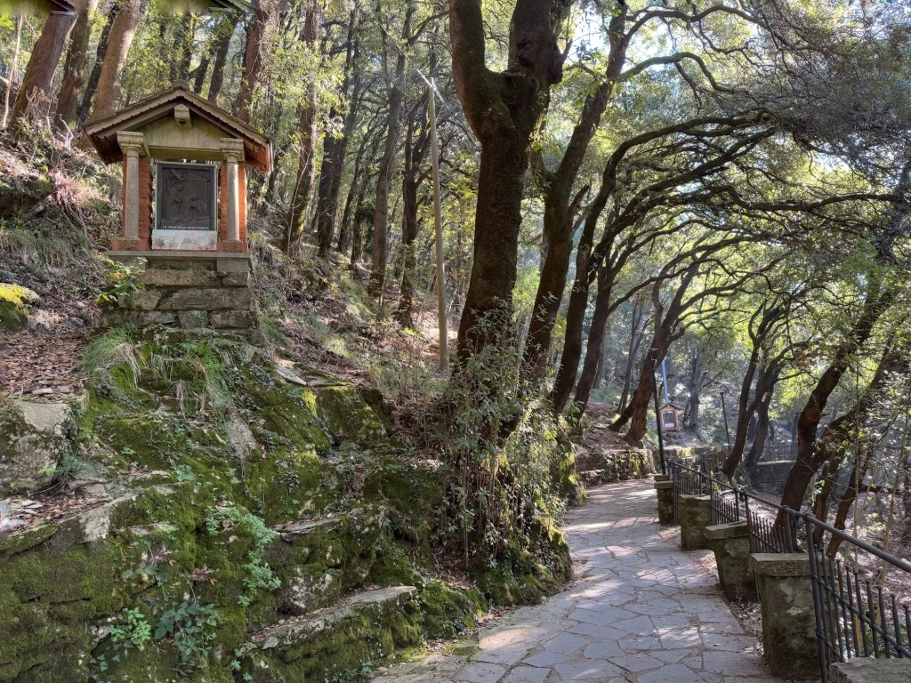 We passed the magnificent Santuario Basilica Nostra Signora di Montallegro, then took an ancient mule track along the Ligurian long distance footpath. The views over Rapallo and the Portofino coast were stunning, and the path was very pretty, through the dappled shade of old Holm Oaks.
