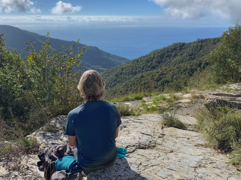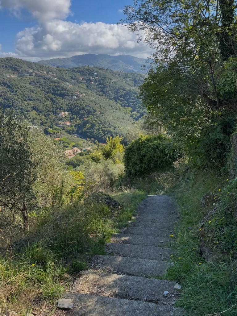 The difficult section didn’t last too long before the path got easier again and we came to farmland with olives and vines and views of the Gulf of Tigullio and our destination, Chiavari.