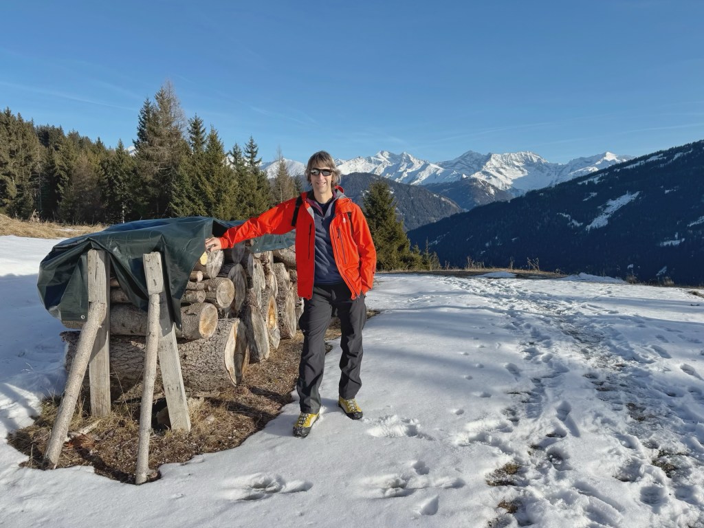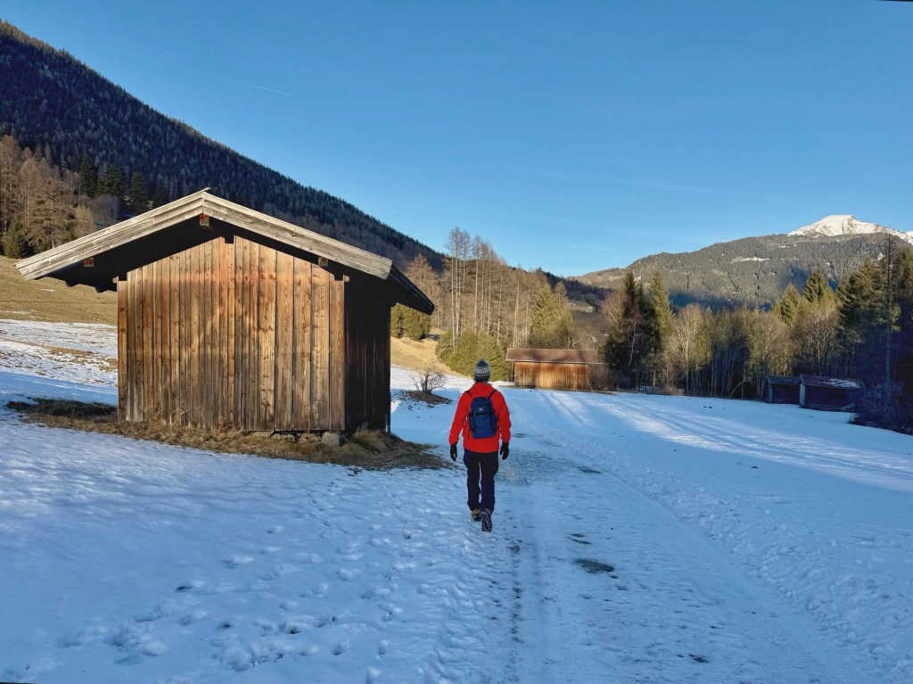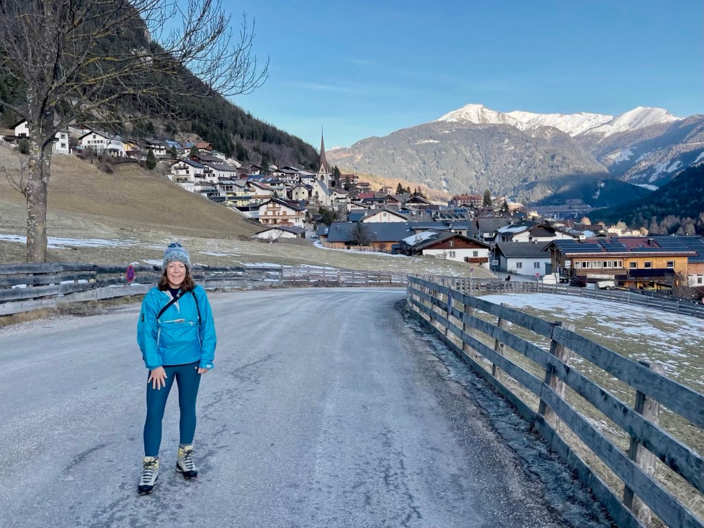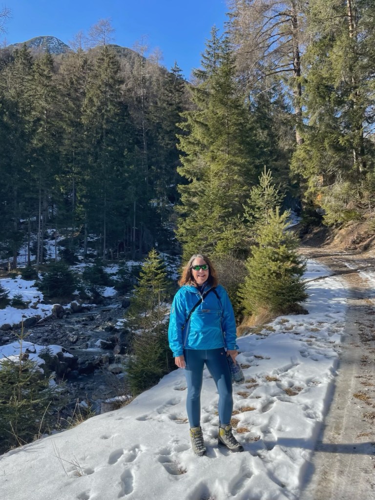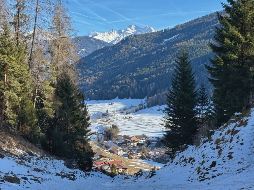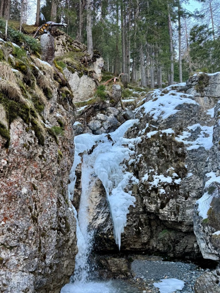 After lunch it was time for some exercise. The plan was to walk up through the forest to a waterfall and then to skirt the mountain above the village on a winter walking trail before heading back down to Trins.