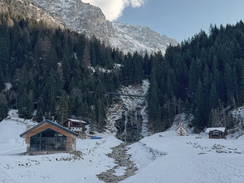 The hamlet of Gschnitz suffered a devastating mudslide on 30th June 2025 and there was still evidence of it, even though everything was blanketed in snow. Some of the buildings still had mud up their sides and the damage to others was obvious.