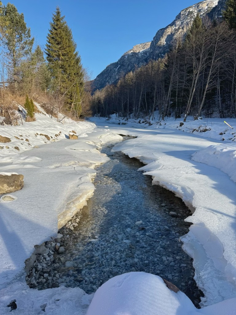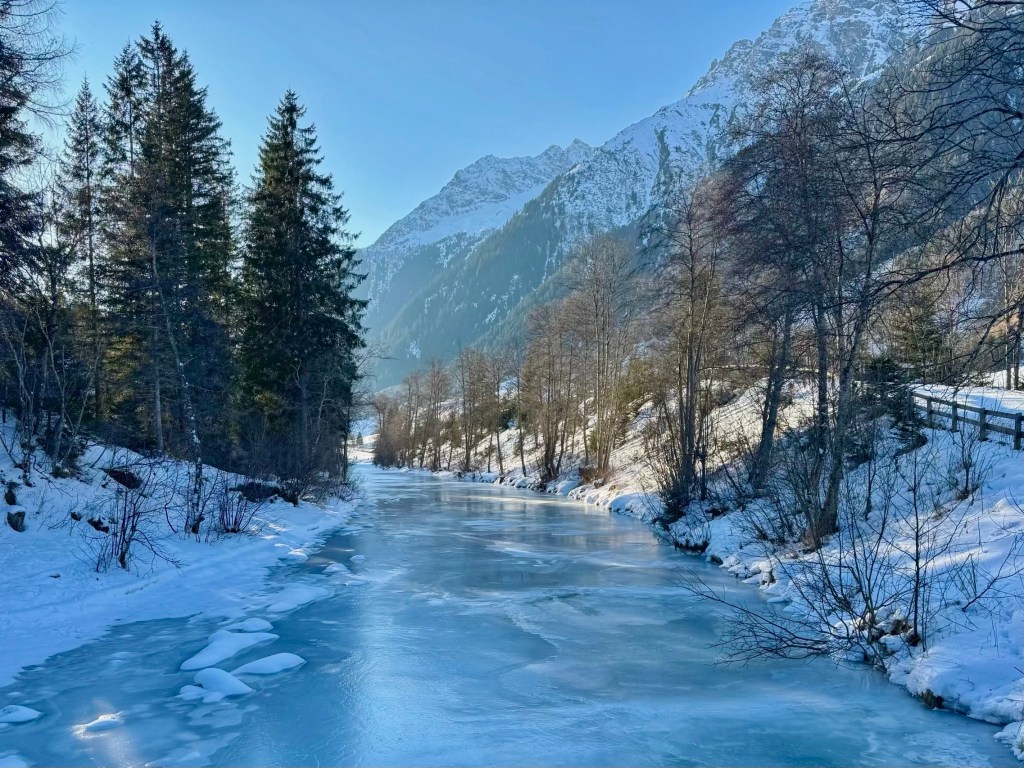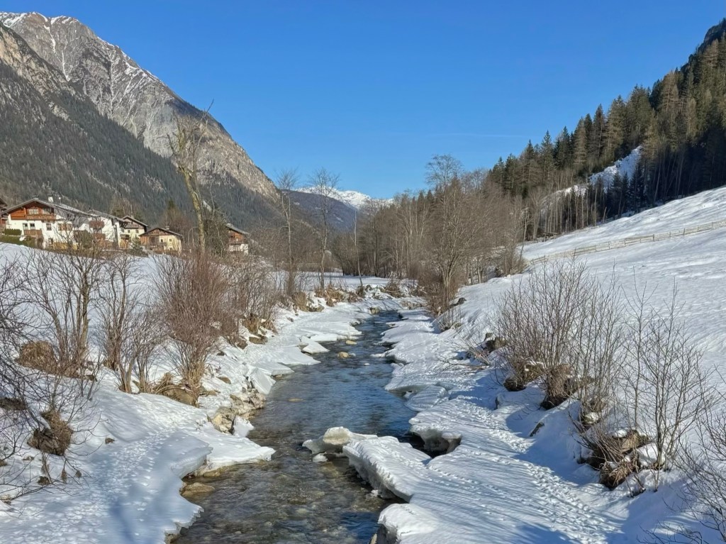 After a leisurely morning, we once again took the bus to Trins. However, this time we stayed on until the end of the road past Gschnitz. There was more snow than there was in Trins and it was colder because the valley is narrower and receives less sunshine.