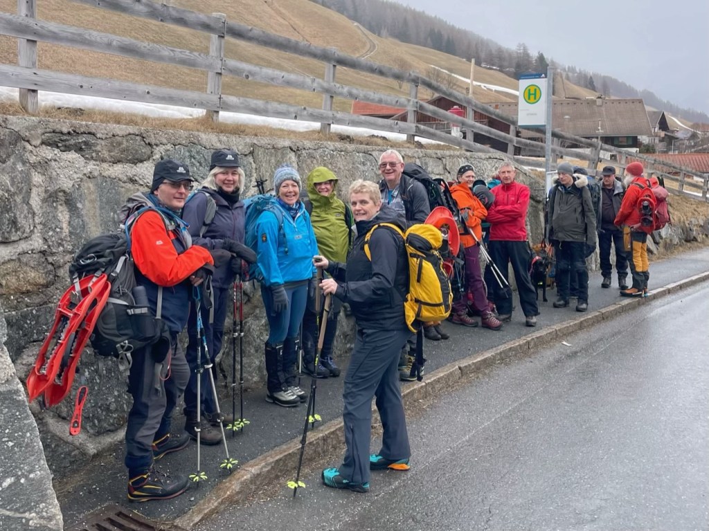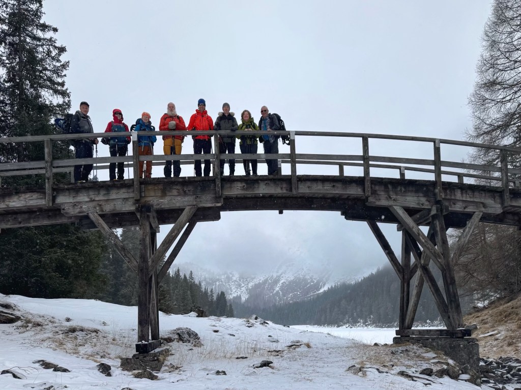 After breakfast, we caught the bus to the start of the trail around Obernberger See. There, we put on our spikes and checked our avalanche transceivers before heading up the path to the lake.