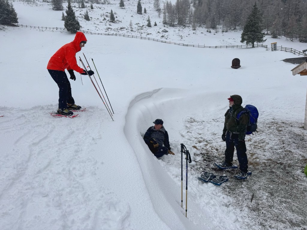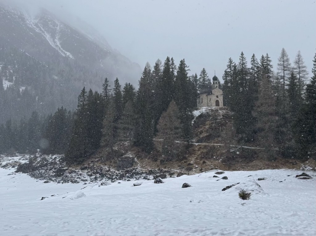 After returning to the little chapel and Obernberger See, we headed back down to Obernberger, leaving the path to enjoy deeper snow. At one point I fell but, because the snow was soft it didn’t hurt, I avoided being a drama queen for the second time in a day. In fact, it was fun! (I was a drama queen later on, but that’s another story I won’t go into 😜).