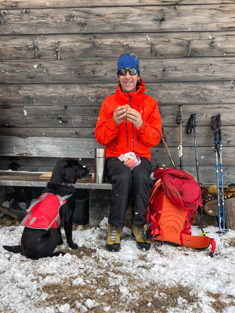 After a while, we reached the wooden buildings of Steineralm just as Sean’s group were finishing their packed lunches and getting ready to head off again. We took their places on the wooden benches, Minx the black labrador eyeing up everyone’s sandwiches before she had to go!