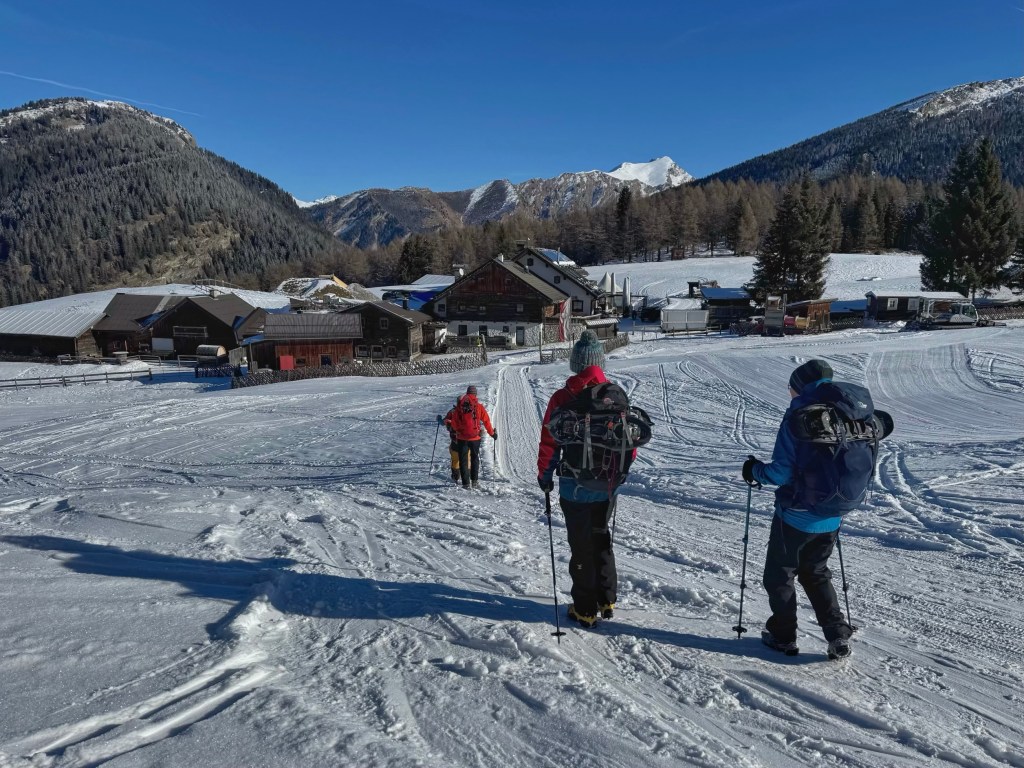 After a couple of hours and 400 metres of ascent, we arrived at Sattelalm (1633 metres). This restaurant is situated between a couple of ski slopes that don’t have lifts and are used mainly by ski tourers.