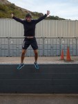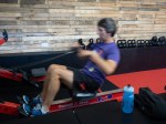 Similarly, the next images were taken of my husband at the gym and in the pictures of him on the rowing machine, he is less blurred as I increased the shutter speed. In the one of him jumping off the wall, he is crisp because the shutter speed is very fast. For the pictures of him on the rower, because the light was poor inside, I had to increase the ISO to expose the images correctly at the faster shutter speeds. I forgot to reduce the ISO again when we went outside so the final image is a bit noisy.