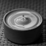 I decided to have a go at photographing water droplets to illustrate shutter speed, particularly fast shutter speed. I set up a small bowl of milk under the tap because I read that milk showed the droplets and splash effect better because it’s a bit denser than water. I used a sponge to drip water from the end of the tap into the milk because the flow of the tap itself was too fast. The camera was set up on the tripod with my 60mm macro lens on it. I used a shutter release cable so I could easily release the shutter as I made the drops using the sponge. I also used high burst shooting to capture several stages of the water dropping into the milk. I used autofocus to focus on the tip of a pencil pointing where the droplet would hit the water, then switched to manual focus to stop autofocus refocussing when the shutter was released.